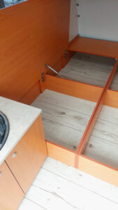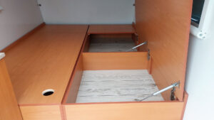 - Suuri vuode 140 x 190 cm säilytyslokeroilla